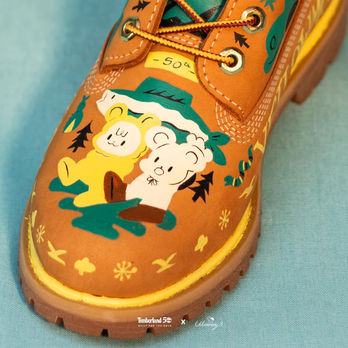 โชว์เคสเพ้นท์รองเท้าครั้งแรก ในคอนเซปท์ Yellow mood, yellow boot. สีเหลืองมักให้ความรู้สึก bright cheerful energetic และ Happy เหมือนดังความรู้สึกของหมีและนักเดินทางที่ได้สวมบู๊ตเหลืองคู่ใจออกไปผจญภัยทำสิ่งที่ตัวเองรัก